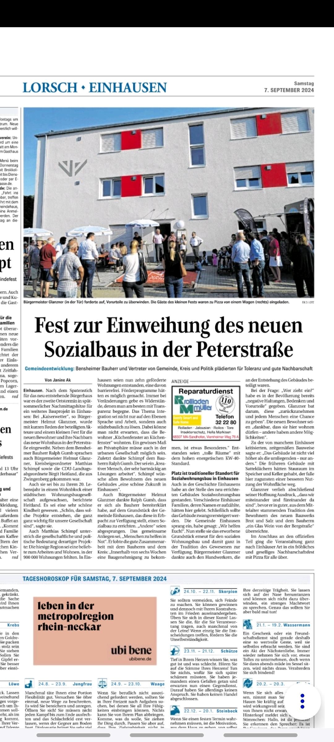 Bergsträßer Anzeiger Fest zur Einweihung des neuen Sozialbaus in der Peterstraße